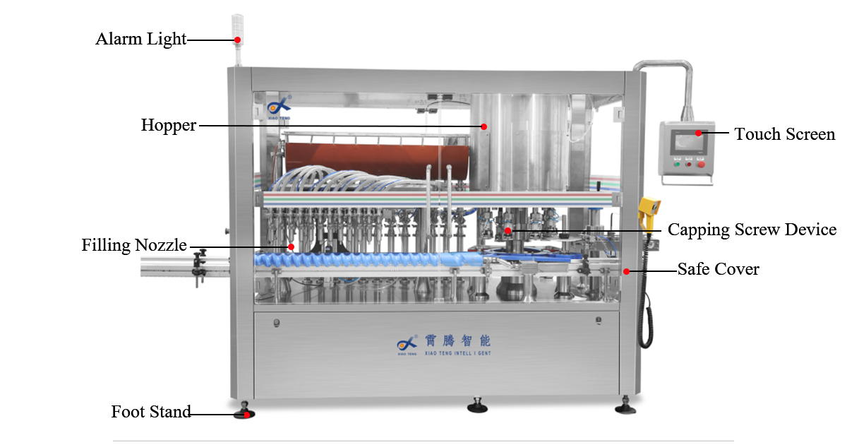 الآلة تعتمد PLC التحكم البرمجي، إنها نظام معقد يتكون من البصريات والآلية والكهربائية والحساسات والهوائية. مضخة المكبس تستخدم محرك السيرفو، وتم تعيين التعبئة بسرعة عالية ومنخفضة. عندما يصل حجم التعبئة إلى فم الزجاجة، سيبدأ التعبئة بسرعة منخفضة تلقائيًا لمنع تسرب السائل. هذه الآلة ذات درجة عالية من الأتمتة، وسهلة التعديل، عند تغيير زجاجات مختلفة وحجم التعبئة. ما عليك سوى ضبط المعلمات على شاشة اللمس. قسم الغطاء يعتمد تحديد الغطاء بالبرغي. لا يوجد زجاجة مكسورة أو غطاء مكسور أثناء عملية الغلق، الأجزاء ذات عمر طويل للخدمة، وتشغيل مستقر، وضوضاء منخفضة، ونطاق واسع من الاستخدام ومعدل مؤهل عالي. الآلة تعتمد إطار من الفولاذ المقاوم للصدأ 304، جميل وكبير؛ سرعة الإنتاج في هذه الآلة قابلة للتعديل بواسطة التردد، مما يسهم في دعم خطوط الإنتاج المختلفة. إنها الخيار المثالي لورش التعبئة الكبيرة والمتوسطة. مناسبة لزيت الطعام، والمربى، والعسل، والشراب، والمستحضر، والمستحلب، والزيت، وصناعة المستحضرات الصناعية من المواد اللزجة المختلفة.